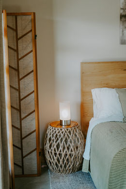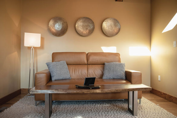 Spacious living room that converts to sleeping area with a queen pull out sofa
