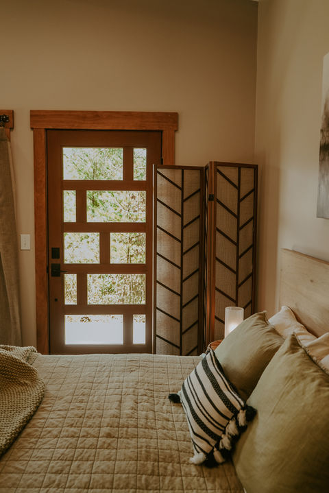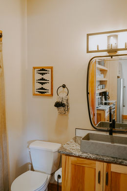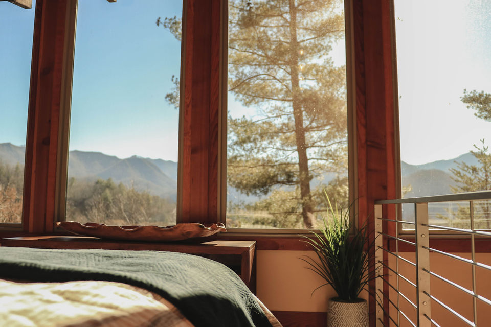 The Wayah House offers stunning mountain views coupled with modern elegance. Sleek black exterior styling is offset with soft interior earth tones to soothe any mood. This luxury "tiny" home boasts two full master suites, each with king suite, private living area and bathrooms, and private access to covered porches for relaxing. The Wayah House sleeps four to six people comfortably and has a full kitchen, spacious living room with half bath, and an outdoor living and dining space. There truly is nothing like it in the Nantahala Gorge